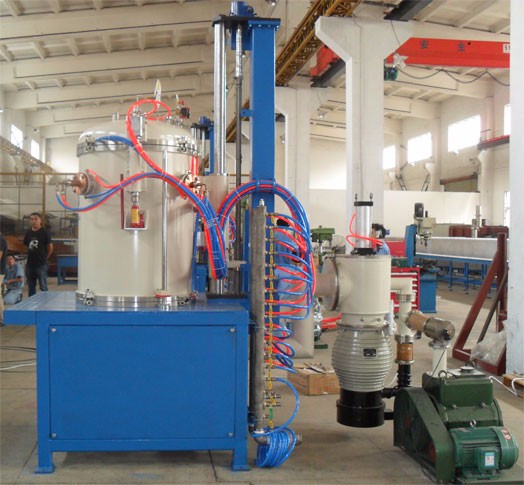 本設(shè)備為鐘罩式結(jié)構(gòu),鉬絲加熱,爐內(nèi)料臺固定,發(fā)熱體及隔熱屏隨爐體升降。